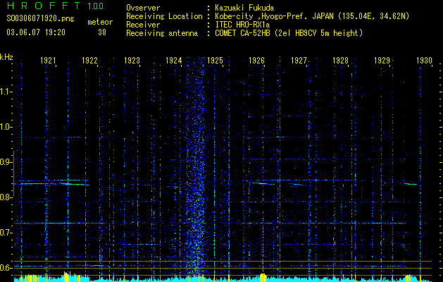アマチュア無線をやっている方にはふだん交信できない地域とやりとりできる楽しみの一つなのですが、HRO観測者にとっては、流星エコーとかぶって観測不能になるため、頭が痛いものです。