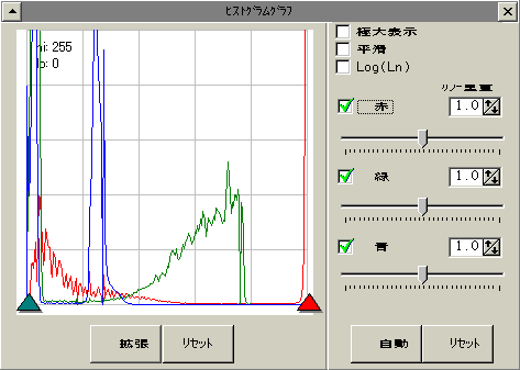 Registaxでヒストグラムを表示させると、こんな状態です。