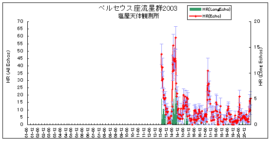 - 引っ越し先で観測再開したのが、いきなり極大日でした。ロングエコーが多くてにぎやかでした。(2003.8.22)