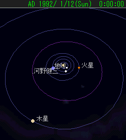 | 1992年1月12日に関 勉さんによって発見された小惑星。 命名の由来となった河野健三さんは明石市立天文科学館に勤務され、1982〜1995年まで同館の第8代館長の職にありました。 |