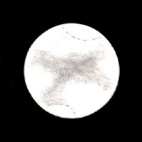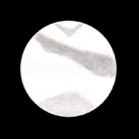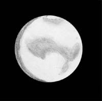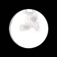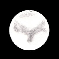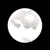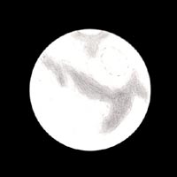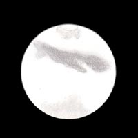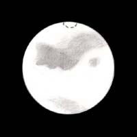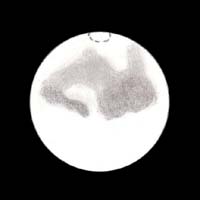 2003年9月22日20:15(JST) 中央経度271度 中央緯度-19.4度 視直径22.3秒 望遠鏡 タカハシMT-130(f=800mm) アイピース PENTAX XL5.2mm(154倍) アポダイジングマスク使用 シーイング 1/5 透明度 5/5 天候に恵まれず、ほぼ一週間ぶりのスケッチとなりました。台風が抜けて透明度は良かったのですが、シーイングは最悪。初の1/5でのスケッチです。極冠は見えず、大シルチスなど暗部がようやく確認できただけです。 |
