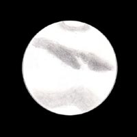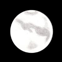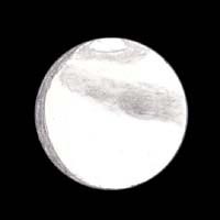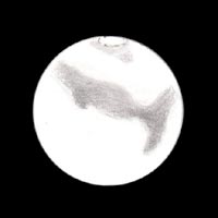 2003年8月6日00:32(JST) 中央経度40.8度 中央緯度-19.7度 視直径23.1秒 望遠鏡 タカハシMT-130(f=800mm) アイピース PENTAX XL5.2mm(154倍) シーイング 3/5 透明度 3/5 鏡筒を13cm反射に換装してのスケッチ。像が安定している時間が長いのは6.5cm屈折だが、像が安定した瞬間の見え味は口径分だけ13cm反射の方が勝っている。ということで、今回は2時間くらい温度順応させた鏡筒でチャレンジ。でも淡い模様ばかりなので、なんか上手く表現できない。大シルチスを見たいなぁ。 |