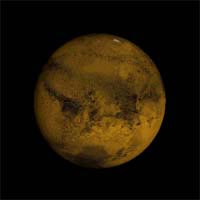 2003年8月27日22:40(JST) 中央経度177.8度 中央緯度-18.9度 視直径25.1秒 望遠鏡 タカハシFS-78(f=630mm) アイピース タカハシ Or7mm(90倍) シーイング 2/5 透明度 2/5 火星最接近の日。明石市立天文科学館の観望会。といっても、今回は星の友の会の会員として、手伝いの方です。 ほんの少しの雲間をぬって、わずかの間、望遠鏡で火星を見ることが出来ました。 少しでも多くの方に見て頂くために、導入と、ときおり視野から外れていないか確認するだけでした。もちろんスケッチを取ってる時間はありませんので、左の絵は「だいたいこんな感じで見えていたな〜」というのを家で思い出して描いたものです(ですから、あまり正確ではありません)。南半球の東西の筋はよく見えていましたが、極冠は今ひとつ分かりませんでした。他の望遠鏡では見えていたようなので、私が見た瞬間の気流が今ひとつだったのかもしれませんね。 9月いっぱいはそれほど大きさに差はないと知っていても、やっぱりこの日の姿を見たいというのは人情です。 この日の火星に巡り会えた幸運を大切にしたいですね。 |