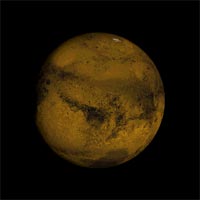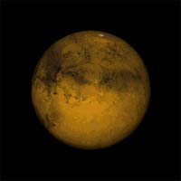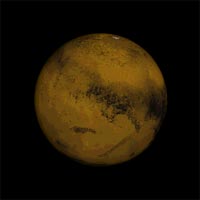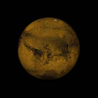 2003年8月10日01:30(JST) 中央経度19.0度 中央緯度-19.5度 視直径23.7秒 望遠鏡 タカハシMT-130(f=800mm) アイピース PENTAX XL5.2mm(154倍) シーイング 4/5 透明度 4/5 台風一過の澄んだ空。シーイングもまずまずで今シーズン一番の見え味。ほんとはもっと細かいところまで見えているのだが、なにせ火星像が小さくて、がんばってもこの程度しか表現できません。この2倍くらいの倍率をかけて見てみたいものです。 そういえば南極冠が手前に突き出ているように見えました。 |