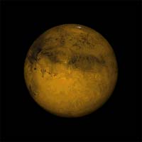 2003年8月23日22:40(JST) 中央経度213.1度 中央緯度-19.0度 視直径25.0秒 望遠鏡 タカハシMT-130(f=800mm) アイピース PENTAX XL5.2mm(154倍) アポダイジングマスク使用 シーイング 2/5 透明度 2/5 火星の視直径が25秒を越え、21世紀最大の接近状態となりました。極冠が本当に小さくなりました。 |