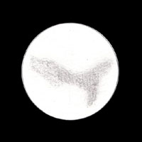 2003年8月5日00:08(JST) 中央経度43.9.度 中央緯度-19.8度 視直径22.9.秒 望遠鏡 自作65mm屈折(f=800mm) アイピース PENTAX XL5.2mm(154倍) シーイング 3/5 透明度 3/5 なんだかあまりはっきりとした模様が見えなくて、自信のないスケッチです。 火星表面があまりに明るいので、ムーンフィルターをかませてみたのですが、像がぼやけてコントラストも落ちたので上手くいきませんでした。 実は手元にある鉛筆が6Bしかなくて、淡い模様の表現が苦手です。そのうちHBかBくらいの鉛筆を調達しなければ。 |